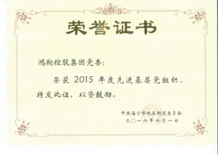 又讯:集团党委荣获硖石街道党委授予的“先进基层党组织”的光荣称号,宋惠良、谢宗幼、陆莉莉、马林峰、王芳芳等五名鸿翔同志获得了“转型发展活动和谐先锋”称号。